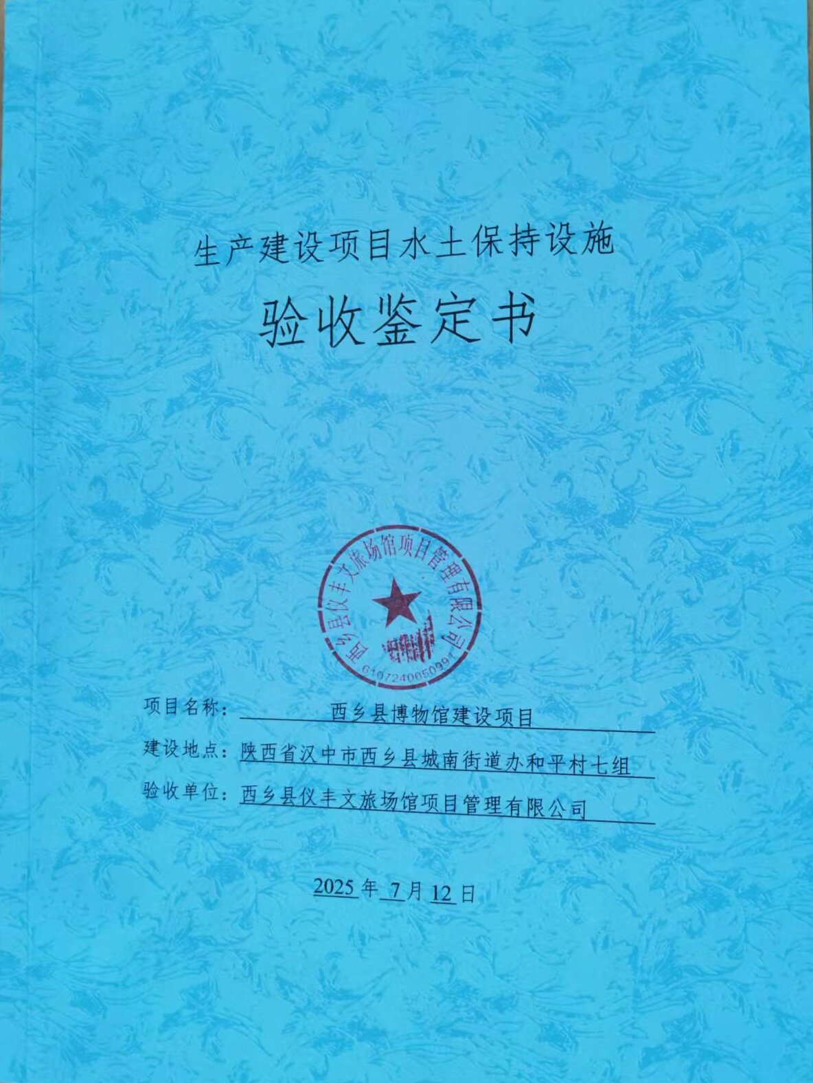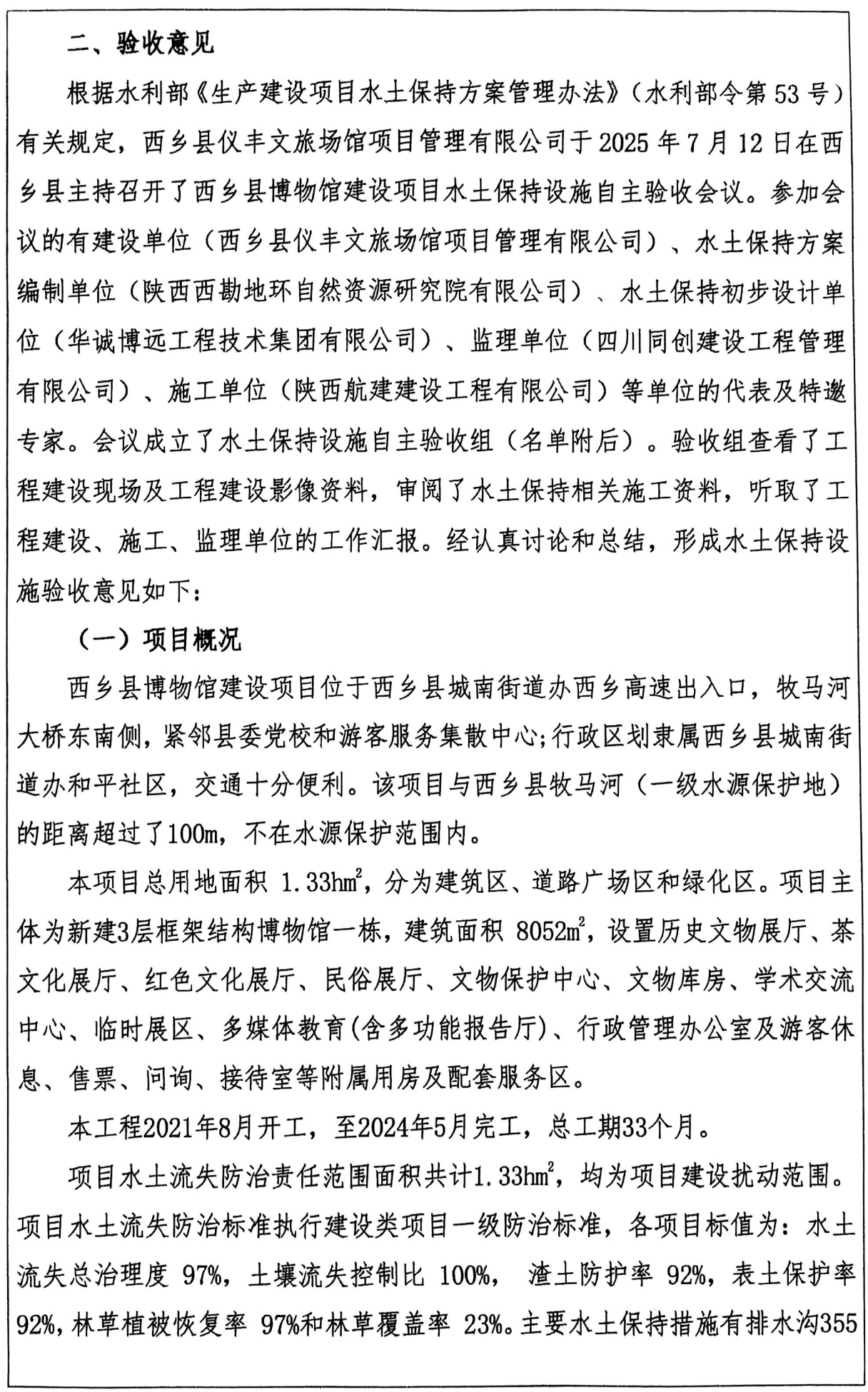 西鄉縣博物館建設項目——生產建設項目水土保持設施驗收鑒定書