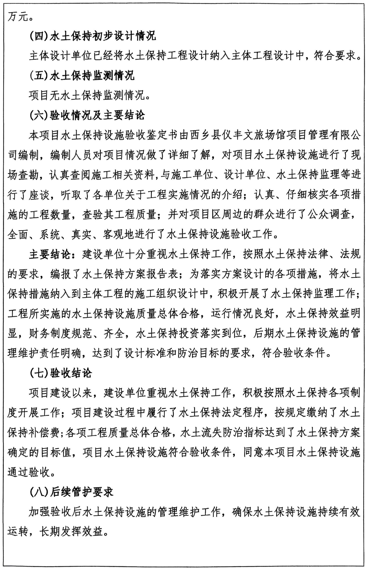西鄉縣旅游集散中心建設項目——生產建設水土保持建設驗收鑒定書
